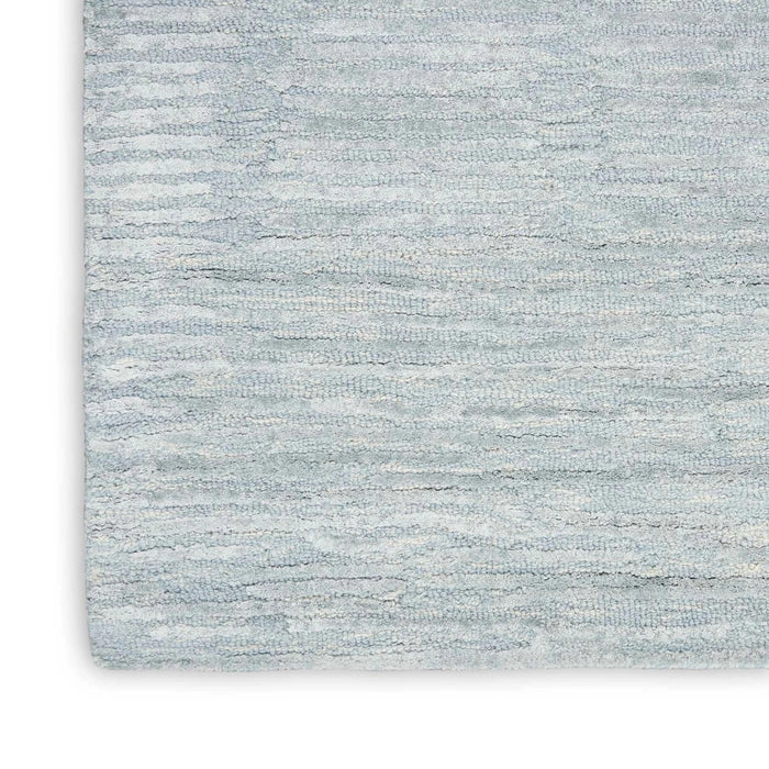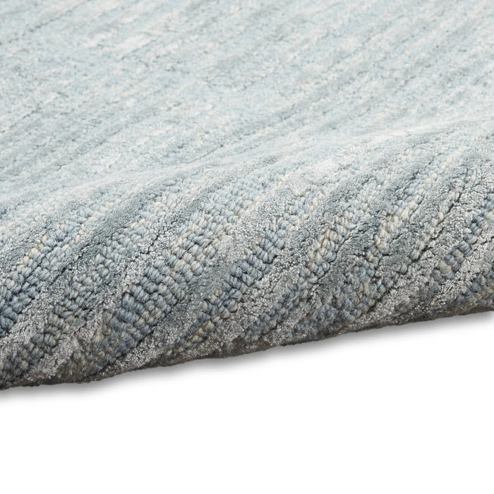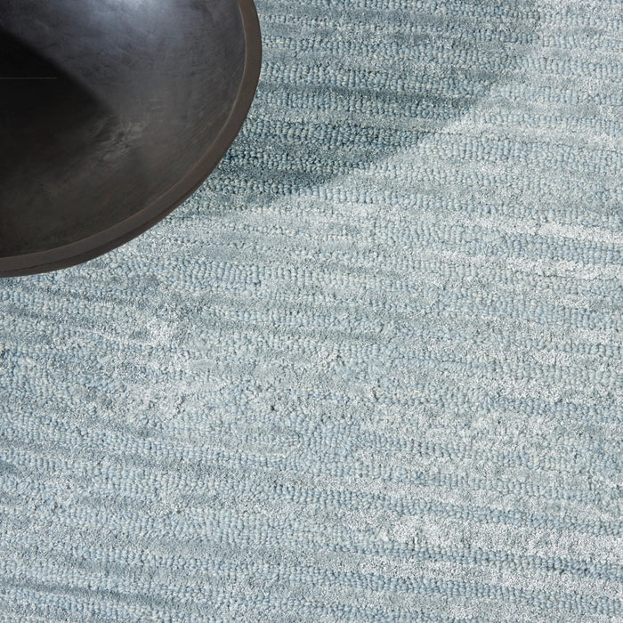 Textured, abstract, linear. This modern, light blue rug from the Calvin Klein Linear Collection infuses distinctive energy into your space. Handmade from a blend of wool and silky Luxcelle in a high-low, cut and loop pile for added dimension.