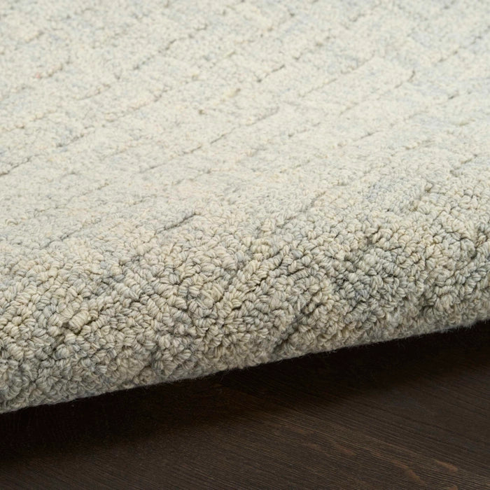 Relaxed simplicity meets sophisticated style with this light blue textured rug from the DKNY Pure Grids collection. This handmade rug thoughtfully balances form and function through a densely looped high-low pile made from 100% wool - a naturally durable, stain-resistant, and hypoallergenic fiber.